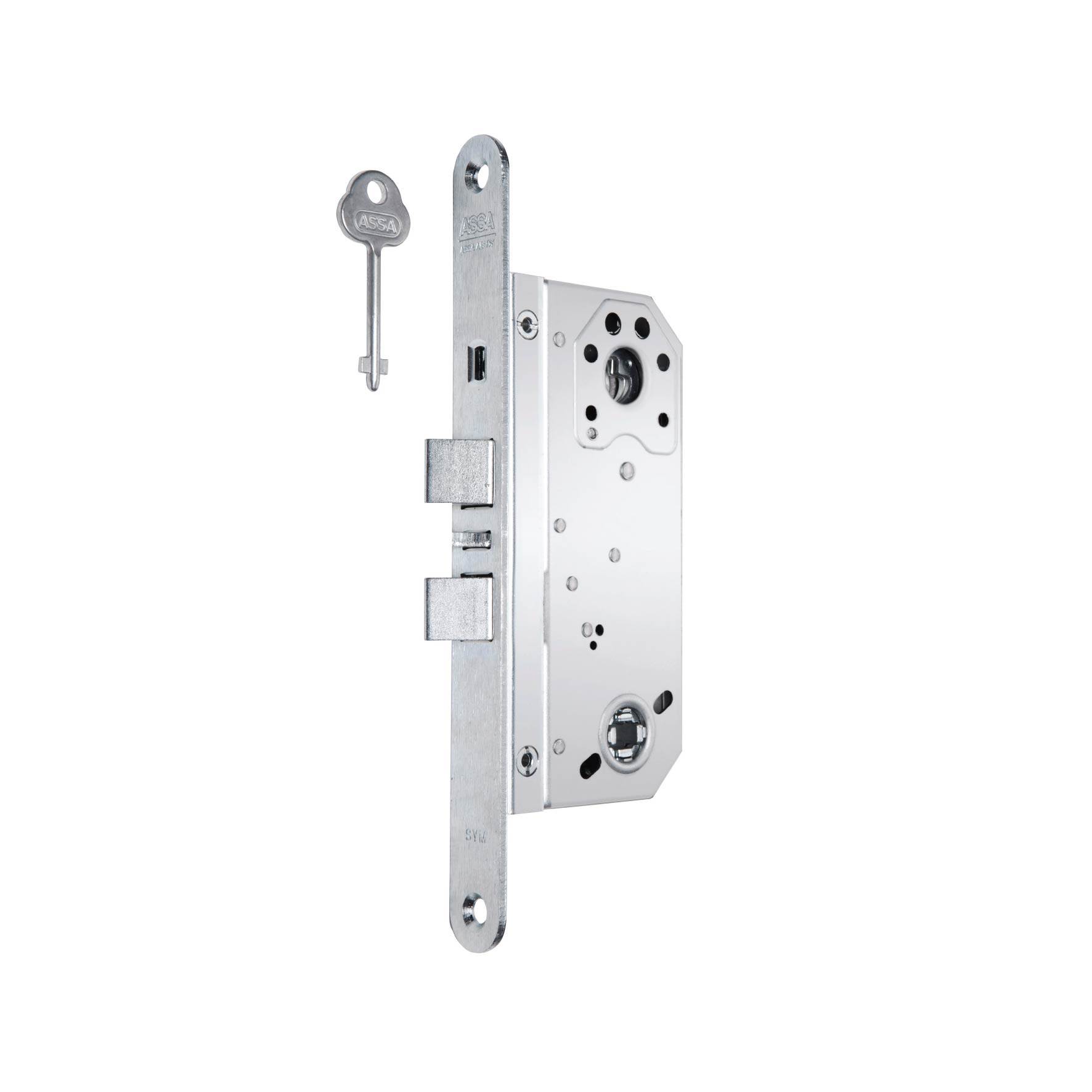 Med sylinder-, sperre- og vriderfalle. Sylinderfalle betjenes med nøkkel eller knappvrider. Vriderfallen betjenes med vrider. Sperring av sylinderfallen ved 14 mm utlåsing og inntrykket sperrefalle. Oppstillbar sylinderfalle. Vendbare faller for høyre-/venstre slagretning. Vriderfalle av stål for branndører. Kan leveres med innebygget mikrobryter.